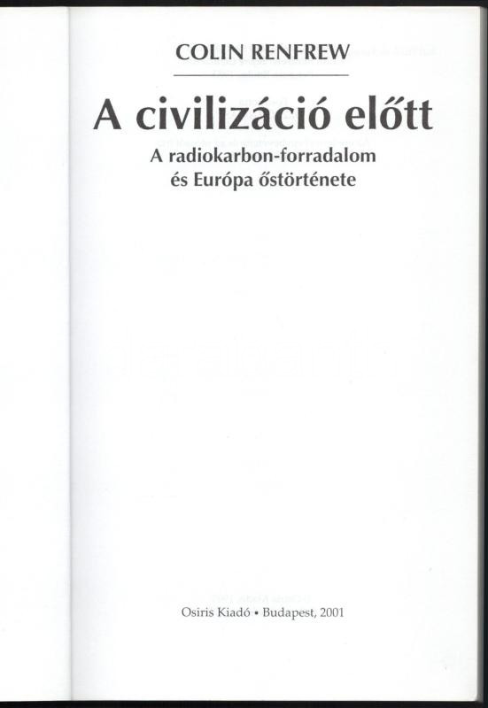 Renfrew, Colin: A civilizáció előtt. A radiokarbon-forradalom és Európ... https://www.darabanth.com/de/512-Fernauktion/512.0/Bucher/Bucher-Geschichte~670/Renfrew-Colin-A-civilizacio-elott-A-radiokarbon-forradalom-es-Europa-ostortenete-Bp-200~II3463099