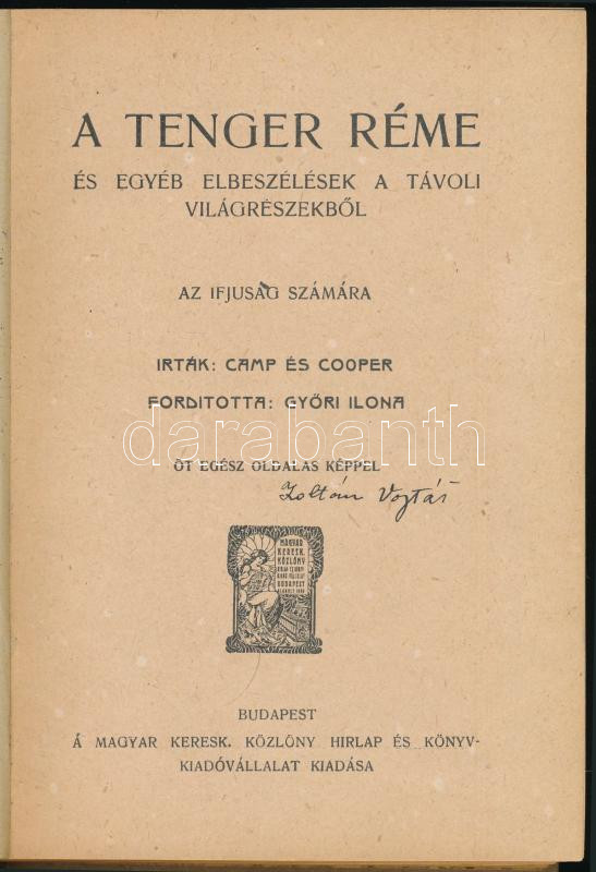 Camp és Cooper: A tenger réme és egyéb elbeszélések a távoli világrészekből. Bp., Magyar Kereskedelmi Közlöny. Kiadói festett egészvászon kötés, jó állapotban.