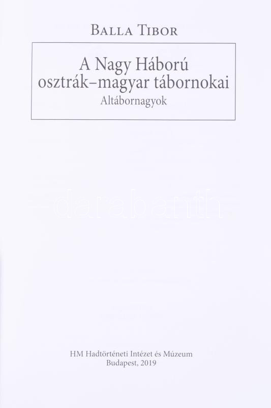 Balla Tibor: A Nagy Háború Osztrák-Magyar Tábornokai - Altábornagyok 2... https://www.darabanth.com/de/512-Fernauktion/512.0/Bucher/Bucher-Militaria~671/Balla-Tibor-A-Nagy-Haboru-Osztrak-Magyar-Tabornokai-Altabornagyok-2---Hadtorteneti-Int~II3459563
