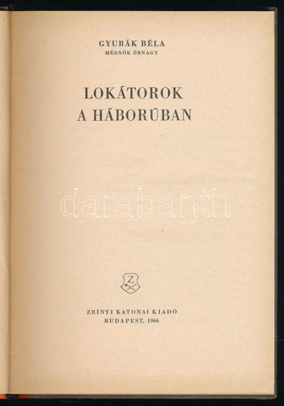 Gyurák Béla: Lokátorok a háborúban. Bp., 1966, Zrínyi, 157+(3) p. Egye... https://www.darabanth.com/de/512-Fernauktion/512.0/Bucher/Bucher-Militaria~671/Gyurak-Bela-Lokatorok-a-haboruban-Bp-1966-Zrinyi-157plus3-p-Egyetlen-kiadas-Kiadoi-fC3~II3461144