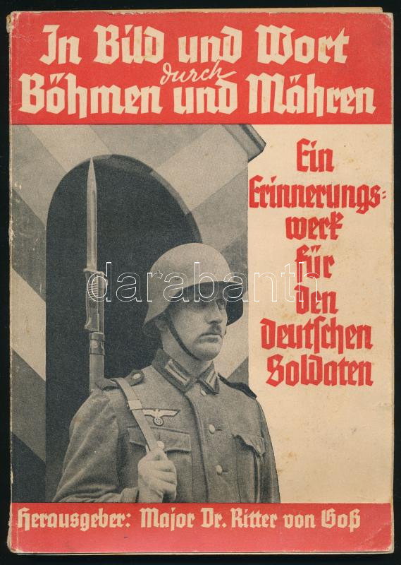 In Bild und Wort durch Böhmen und Mähren. Ein Erinnerungswerk für den deutschen Soldaten. Berlin-Charlottenburg, 1940, Verlag ,,Die Wehrmacht", 125+(1) p. Fekete-fehér fotókkal illusztrálva. Német nyelven. Kiadói papírkötés, kissé sérült, foltos, a könyvtesttől különvált borítóval.