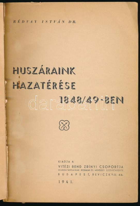 Rédvay István: Huszáraink hazatérése 1848/49-ben. Bp., 1941, Vitézi Re... https://www.darabanth.com/de/512-Fernauktion/512.0/Bucher/Bucher-Militaria~671/Redvay-Istvan-Huszaraink-hazaterese-184849-ben-Bp-1941-Vitezi-Rend-Zrinyi-Csoportja-14~II3462513