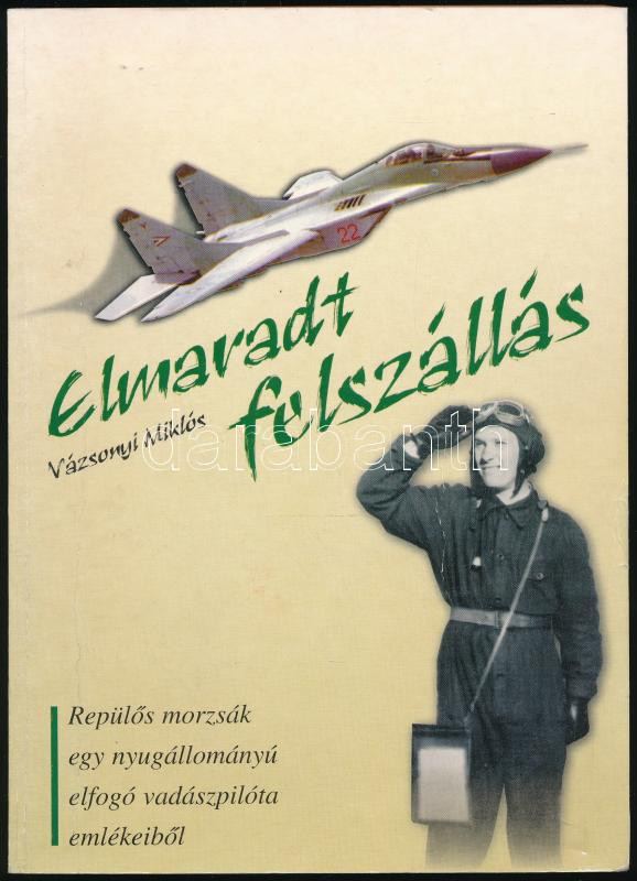 Vázsonyi Miklós: Elmaradt felszállás. Repülős morzsák egy nyugállományú elfogó vadászpilóta emlékeiből. A szerző által dedikált példány; hozzá mellékelve (a belső kötéstáblára ragasztva) a szerző aláírt levele. Kecskemét, 2002, szerzői kiadás, 201 p. Kiadói papírkötés.