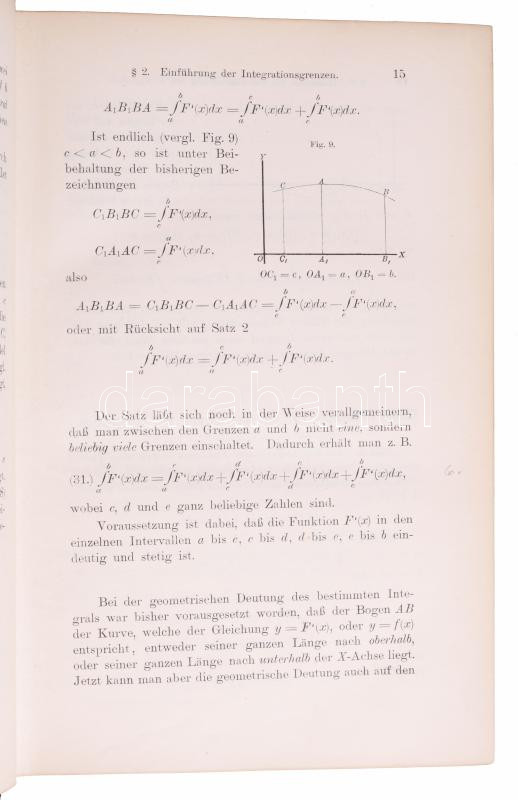 Kiepert, Ludwig: Grundriss der Differential- und Integral-Rechnung. I-II. Teil. [2 kötet.] Hannover, 1901-1908, Helwingsche Verlagsbuchhandlung, XVII+(1)+750+(2) p.; XXIII+(1)+678 p. Német nyelven. Aranyozott gerincű félbőr-kötésben, kissé viseltes, kopottas borítóval, kissé sérült gerinccel, régi intézményi bélyegzővel.