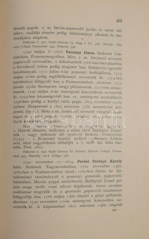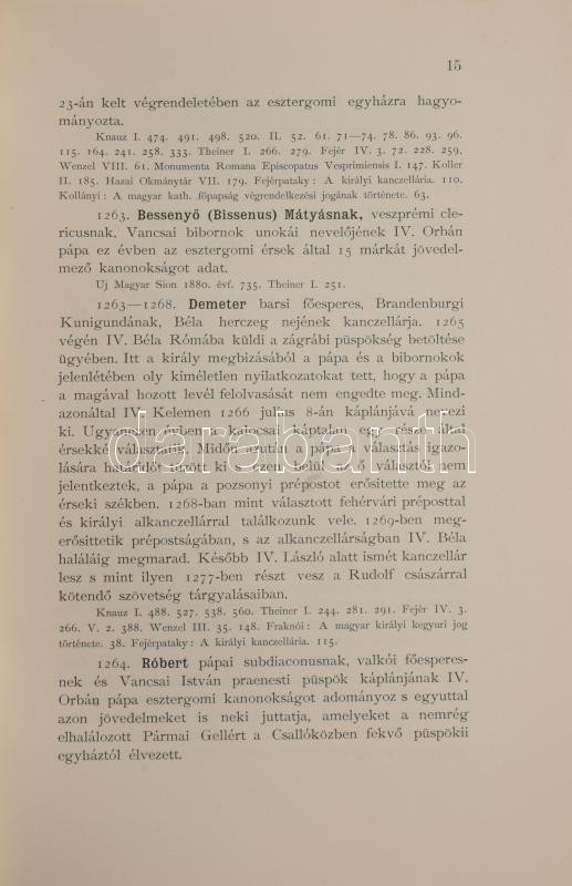 Kollányi Ferencz: Esztergomi kanonokok 1100-1900. A magyar kath. egyház kilencszázados évfordulója alkalmából kiadja az esztergomi főszékesegyházi káptalan. Esztergom, 1900, Buzárovits Gusztáv-ny., LVI+547 p. Egyetlen kiadás. Modern egészbőr- / műbőr-kötésben, az eredeti elülső papírborító bekötve, nagyrészt jó állapotban, néhány kissé foltos, sérült lappal.