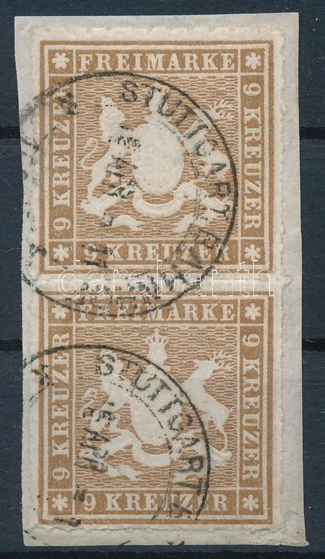 Beschreibung: Német államok - Württemberg 1863 Mi 28 függőleges pár kivágáson, szép minőség! (Mi EUR min. 300.-)