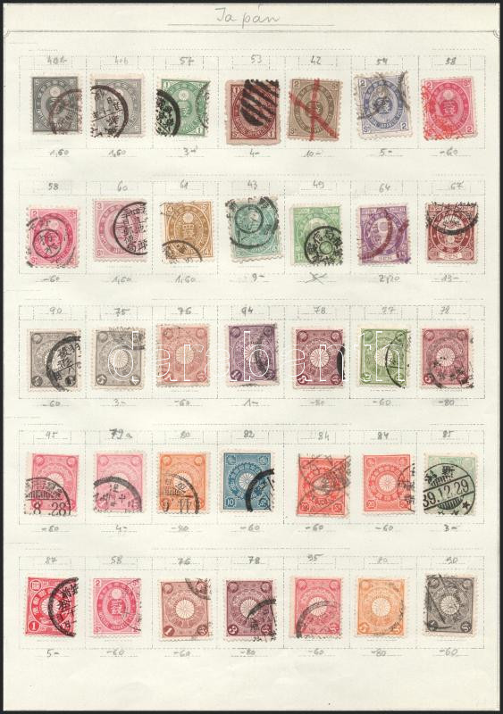Beschreibung: Japán 1876-1969 220 db bélyeg, a fele klasszikus, 4 albumlapon (Mi EUR 400.-)