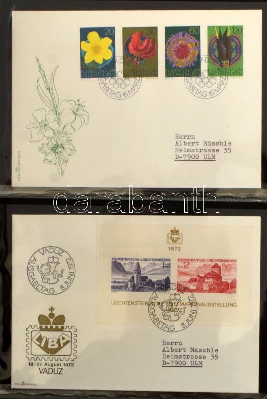 Beschreibung: Liechtenstein kb 100 FDC a 70-es évekből, jó levélberakóban