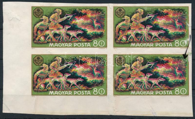 1971 Vadászati világkiállítás 80f vágott ívsarki négyestömb gumi nélkü... https://www.darabanth.com/de/512-Fernauktion/512.0/Erlesene-Lose-und-Sammlungen-Ungarn/Einzelne-Gebotslose-Ungarn~587/1971-Vadaszati-vilagkiallitas-80f-vagott-ivsarki-negyestomb-gumi-nelkuli-papiron-gyenge~II3463563