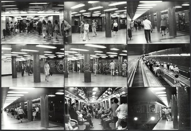 Beschreibung: 1975 június 19. Utasok a metróban, 13 db vintage fotó, ezüst zselatinos fotópapíron, jelzés nélkül, 9x13 cm