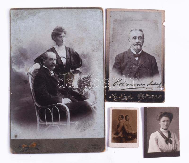 Vegyes keményhátú fotó tétel (vizitkártyák, kabinetfotók, mignon fotók), összesen 40 db, különféle műtermekből, változó méretben és állapotban (közte sérült, foltos)