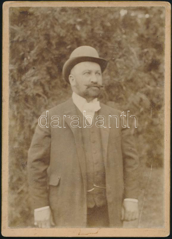 cca 1900-1910 Vertán Adorján (1859-1928) építész, a magyarbánhegyesi Vertán család tagjának portréja, keményhátú fotó, a hátoldalon bélyegzővel, 18x13 cm