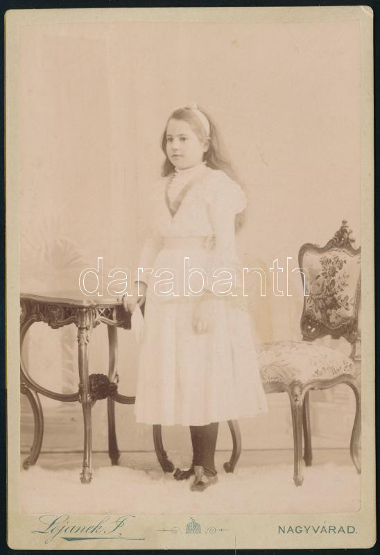 cca 1900 Kislány portréja, keményhátú fotó Lojanek János nagyváradi mű... https://www.darabanth.com/de/512-Fernauktion/512.0/Fotografie/Foto~687/cca-1900-Kislany-portreja-kemenyhatu-foto-Lojanek-Janos-nagyvaradi-mutermebol-16-5C39710-~II3459660
