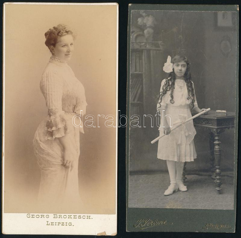 cca 1910 Kislány és hölgyportré, 2 db keményhátú fotó karánsebesi és l... https://www.darabanth.com/de/512-Fernauktion/512.0/Fotografie/Foto~687/cca-1910-Kislany-es-holgyportre-2-db-kemenyhatu-foto-karansebesi-es-lipcsei-muterembol-~II3456945