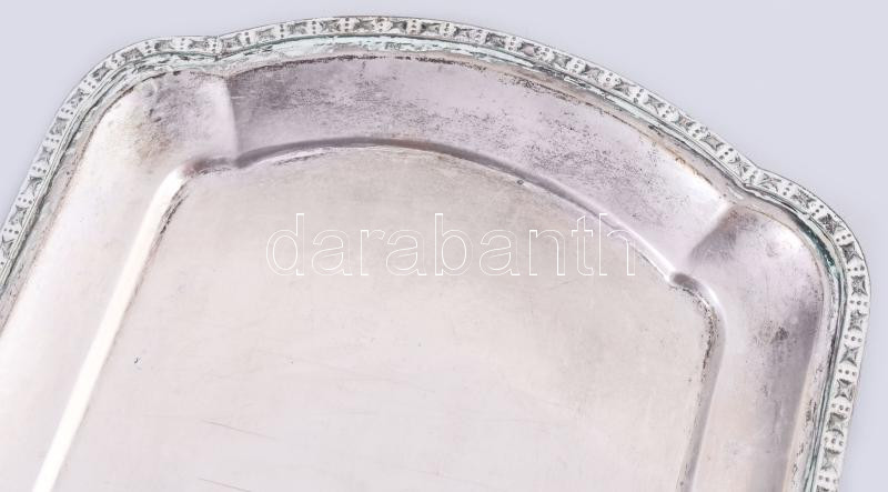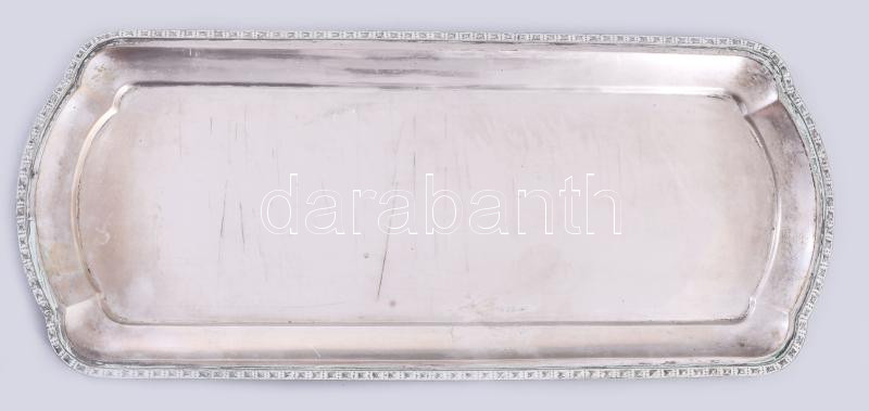 Beschreibung: Ezüst (Ag) tálca ismétlődő csillagmintás peremrésszel, 39x17 cm, jelzett, karcokkal, nettó 454g