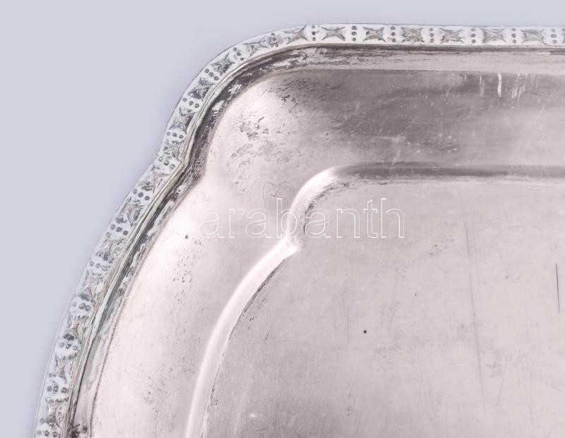 Ezüst (Ag) tálca ismétlődő csillagmintás peremrésszel, 39x17 cm, jelze... https://www.darabanth.com/de/512-Fernauktion/512.0/Juwellen-und-Kunstobjekte-aus-Edelmetall/Juwellen-und-Kunstobjekte-aus-Edelmetall~666/Ezust-Ag-talca-ismetlodo-csillagmintas-peremresszel-39x17-cm-jelzett-karcokkal-netto-4~II3455610