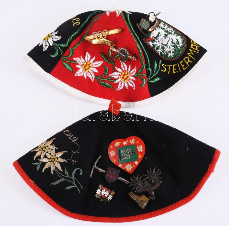 Beschreibung: 2 db hímzett túra kipa. Túra jelvényekkel