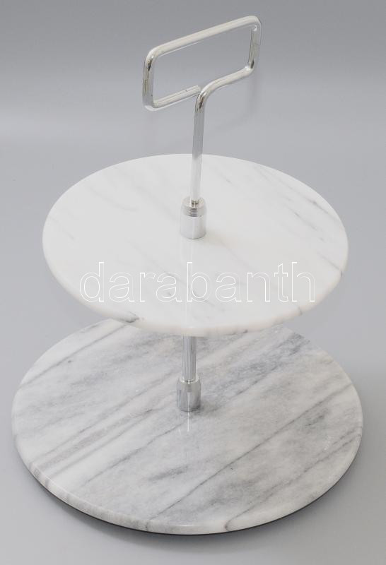 Beschreibung: Kétszintes márványlapos asztalközép kínáló, d: 25 cm, m: 32 cm
