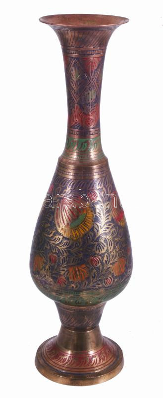 Beschreibung: Zománcozott keleti réz váza, jó állapotban, m: 37 cm