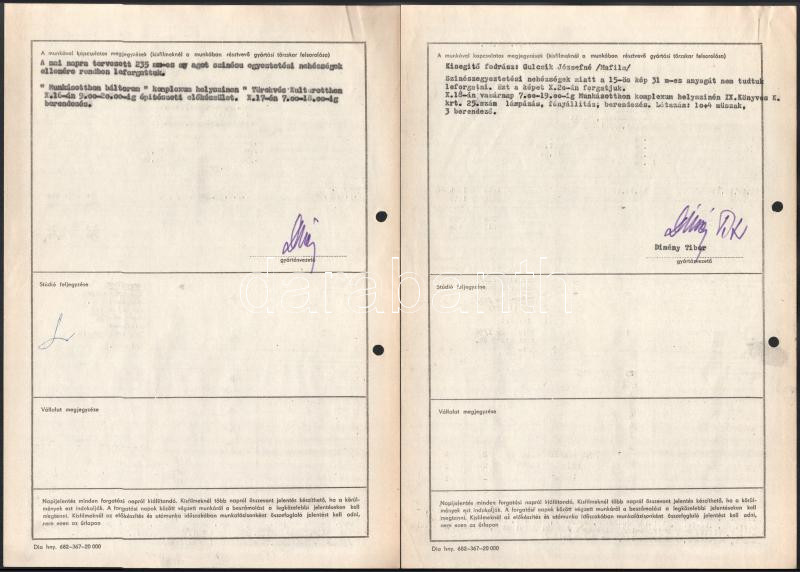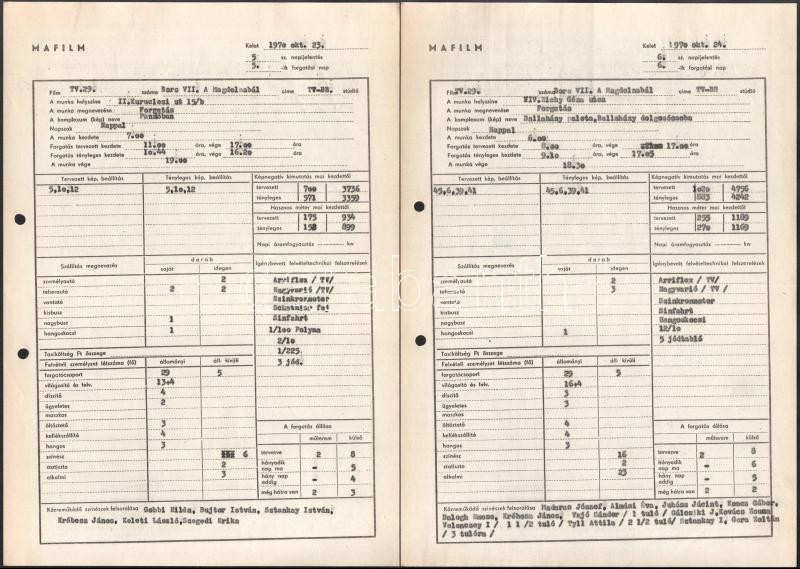 1970 A Bors című televíziós sorozat 7. részének forgatási terve