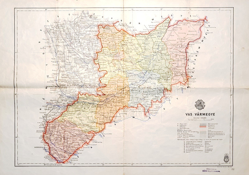 [Térkép] Vas vármegye térképe [a muravidéki bevonulás után]. Mérték: 1:335,000. (1941).