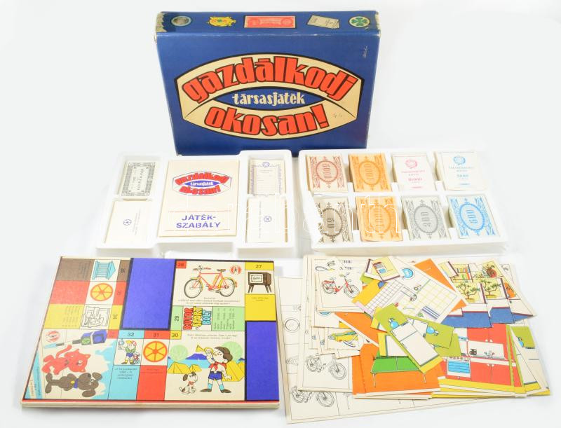 cca 1970 Gazdálkodj okosan! társasjáték, sérült dobozában. https://www.darabanth.com/de/512-Fernauktion/512.0/Kunst-Dokumente-andere-Sammelgebiete/Spielzeuge~582/cca-1970-Gazdalkodj-okosan-tarsasjatek-serult-dobozaban~II3456762