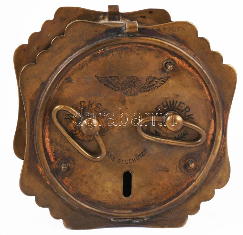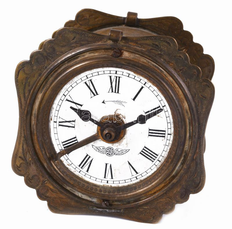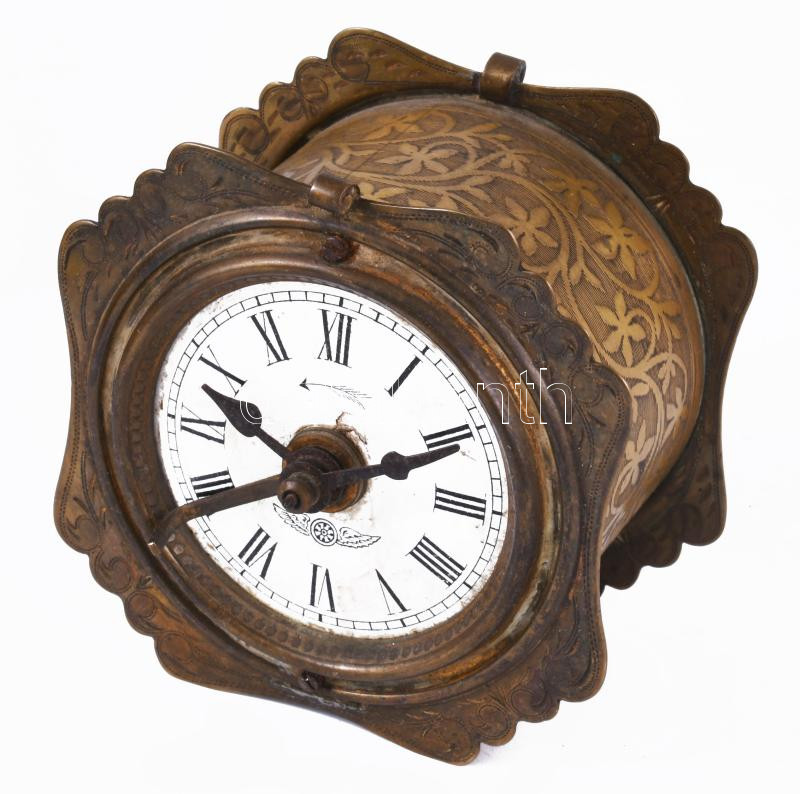 Régi német ébresztőóra, vekker, díszes réz házzal, 8,5x8,5x5,5 cm https://www.darabanth.com/de/512-Fernauktion/512.0/Kunst-Dokumente-andere-Sammelgebiete/Uhren~575/Regi-nemet-ebresztoora-vekker-diszes-rez-hazzal-8-5x8-5x5-5-cm~II3457404