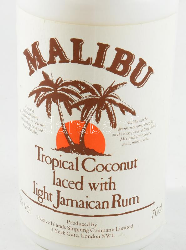 Malibu Tropical Coconut Jamaican Rum, 28%, bontatlan palack, 0,7 l https://www.darabanth.com/de/512-Fernauktion/512.0/Kunst-Dokumente-andere-Sammelgebiete/Vintage-Weine-Getranke~584/Malibu-Tropical-Coconut-Jamaican-Rum-28-bontatlan-palack-0-7-l~II3456467
