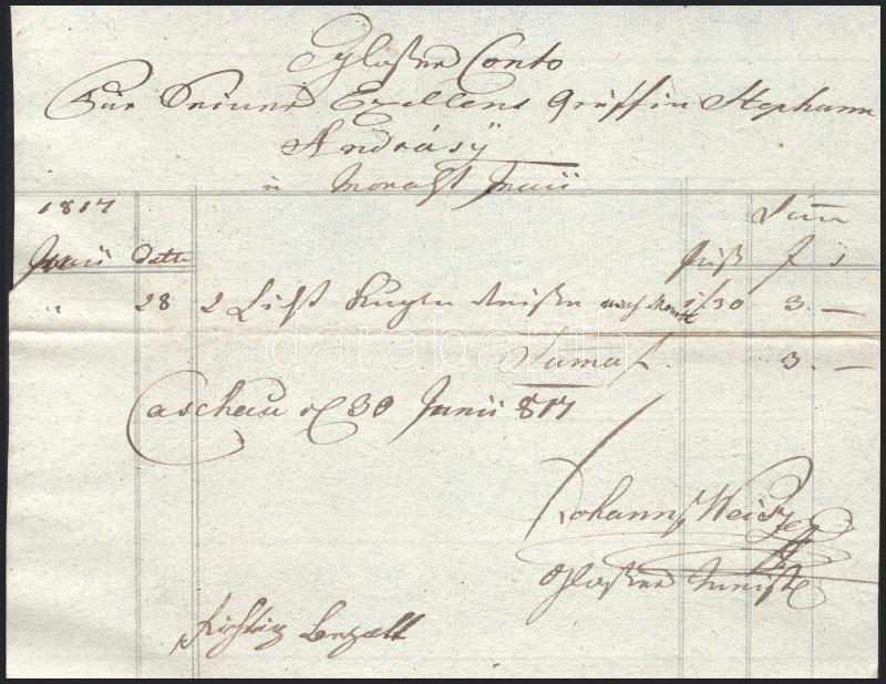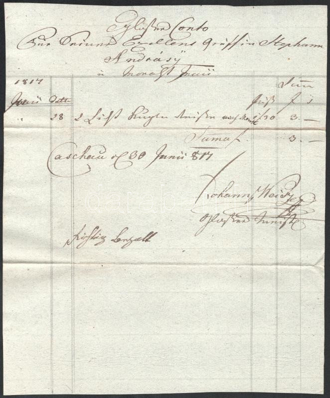 1817 Kassai számla Andrássy grófnő részére https://www.darabanth.com/de/512-Fernauktion/512.0/Kunst-Dokumente-andere-Sammelgebiete/Werbungen~689/1817-Kassai-szamla-Andrassy-grofno-reszere~II3462035
