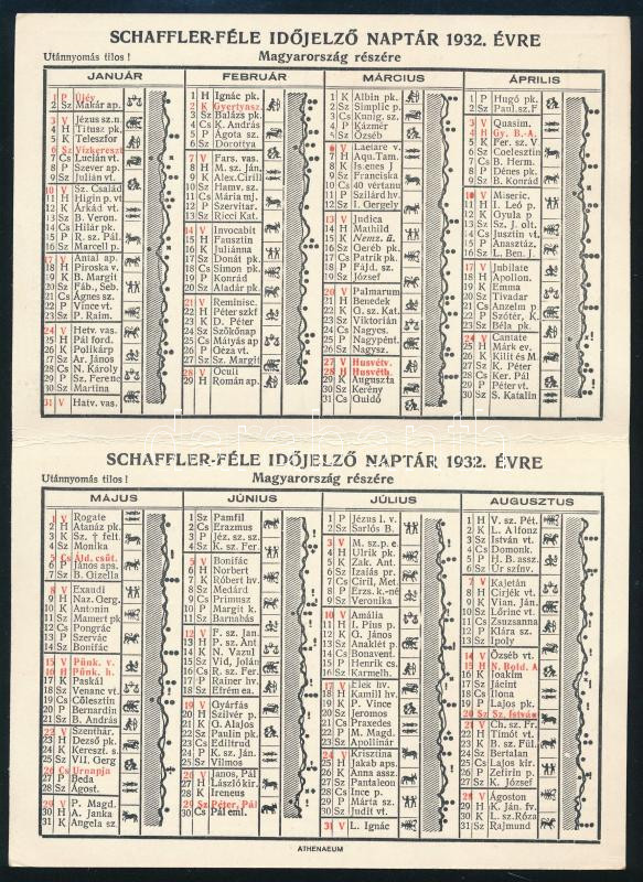 1932 Időjósló naptár - Schlaffler-féle időjelző naptár 1932. évre Kiha... https://www.darabanth.com/de/512-Fernauktion/512.0/Kunst-Dokumente-andere-Sammelgebiete/Werbungen~689/1932-Idojoslo-naptar-Schlaffler-fele-idojelzo-naptar-1932-evre-Kihajthato-kartyanapta~II3458787
