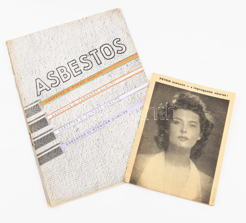 2 darab régi árjegyzék, Pátria lemezen, Asbestos termékek https://www.darabanth.com/de/512-Fernauktion/512.0/Kunst-Dokumente-andere-Sammelgebiete/Werbungen~689/2-darab-regi-arjegyzek-Patria-lemezen-Asbestos-termekek~II3420628