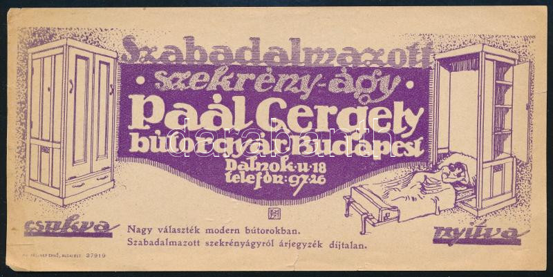 Paál Gergely bútorgyár számolócédula https://www.darabanth.com/de/512-Fernauktion/512.0/Kunst-Dokumente-andere-Sammelgebiete/Werbungen~689/Paal-Gergely-butorgyar-szamolocedula~II3458542