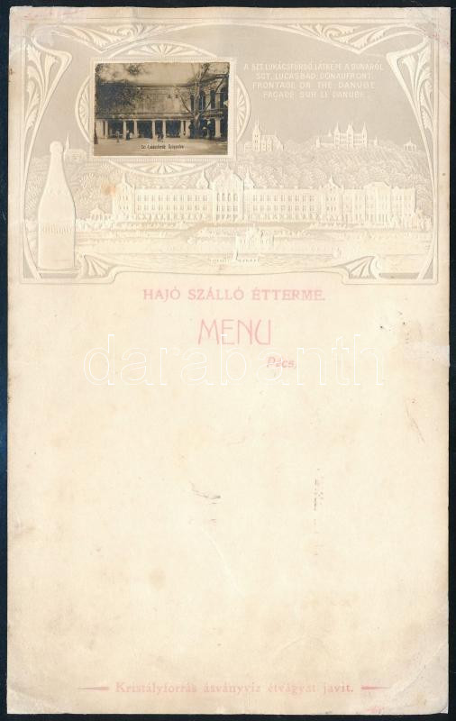 cca 1910 Hajó Szálló Étterme (Pécs) kitöltetlen menükártya, rajta a Sz... https://www.darabanth.com/de/512-Fernauktion/512.0/Kunst-Dokumente-andere-Sammelgebiete/Werbungen~689/cca-1910-Hajo-Szallo-Etterme-Pecs-kitoltetlen-menukartya-rajta-a-Szt-Lukacs-Gyogyfurd~II3464111