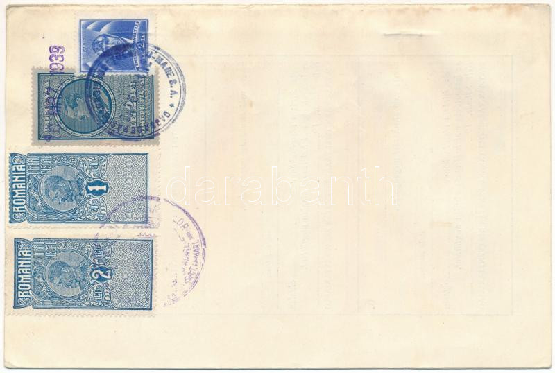 Románia 1922. Szatmárnémeti "Szatmár Vármegyei Takarépénztár Részvénytársaság" névre szóló részvénye 600L-ről szelvényekkel, szárazpecséttel T:AU