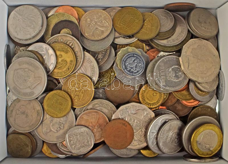 Vegyes külföldi fémpénz tétel ~1kg-os súlyban, csak Európán, USA-n és Kanadán kívüli érmékkel T:vegyes