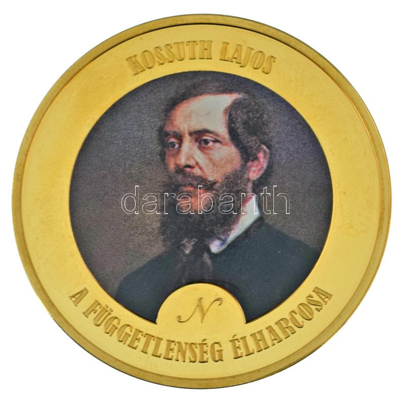Beschreibung: Csontos Attila DN "Sorsfordító magyarok - Kossuth Lajos" aranyozott Cu-Ni emlékérem kapszulában (38,61mm) T:PP