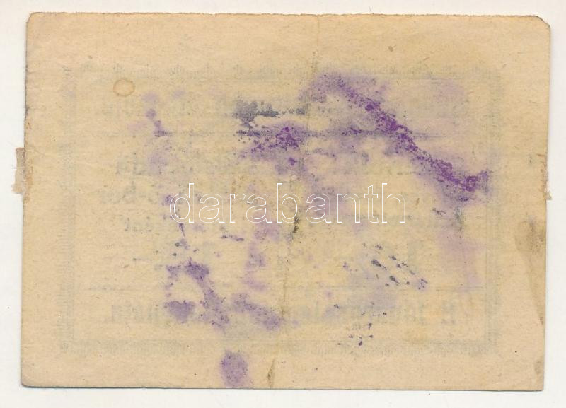 Beschreibung: 1920 k. Budapest "Központi Buffet" 20f értékű utalvány, csak hátlapi nyomat T:VG ragasztás