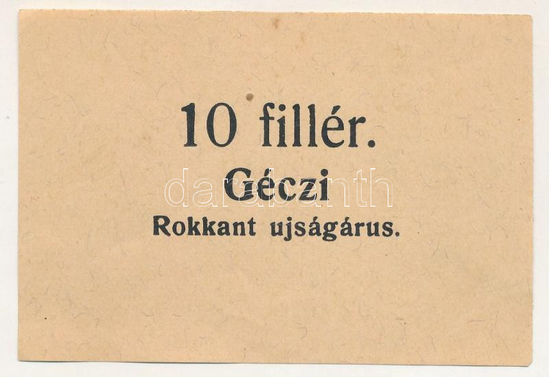 Beschreibung: 1920 k. Nyíregyháza 10f "Géczi rokkant ujságárus " utalvány T:AU