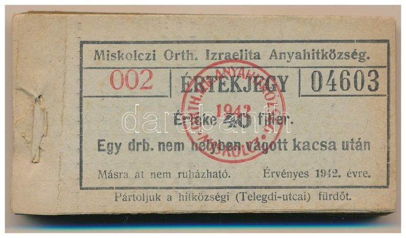 1942. Miskolc 40f "Miskolczi Orth. Izraelita Anyahitközség" ... https://www.darabanth.com/de/512-Fernauktion/512.0/Numismatik/Notgeld-aus-Papier-und-Metall~234/1942-Miskolc-40f-3Cem3EMiskolczi-Orth-Izraelita-Anyahitkozseg3Cem3E-vagatasi-jegy-ertekjegy~II3446416