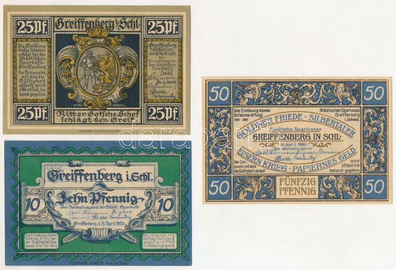 German Empire / Weimar Republic / Greiffenberg in Schlesien (Gryfów Śląski) 1920. 10 Pfennig + 25 Pfennig + 50 Pfennig C:AU