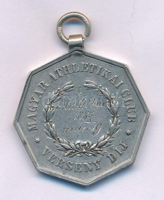 1887. "Magyar Athletikai Club - Verseny díj I. Müller Dav. 1887. máj. 19. / Ép ész csak edzett testben él" jelzés nélküli Ag emlékérem (17,26g/34mm) T:XF, kis patina