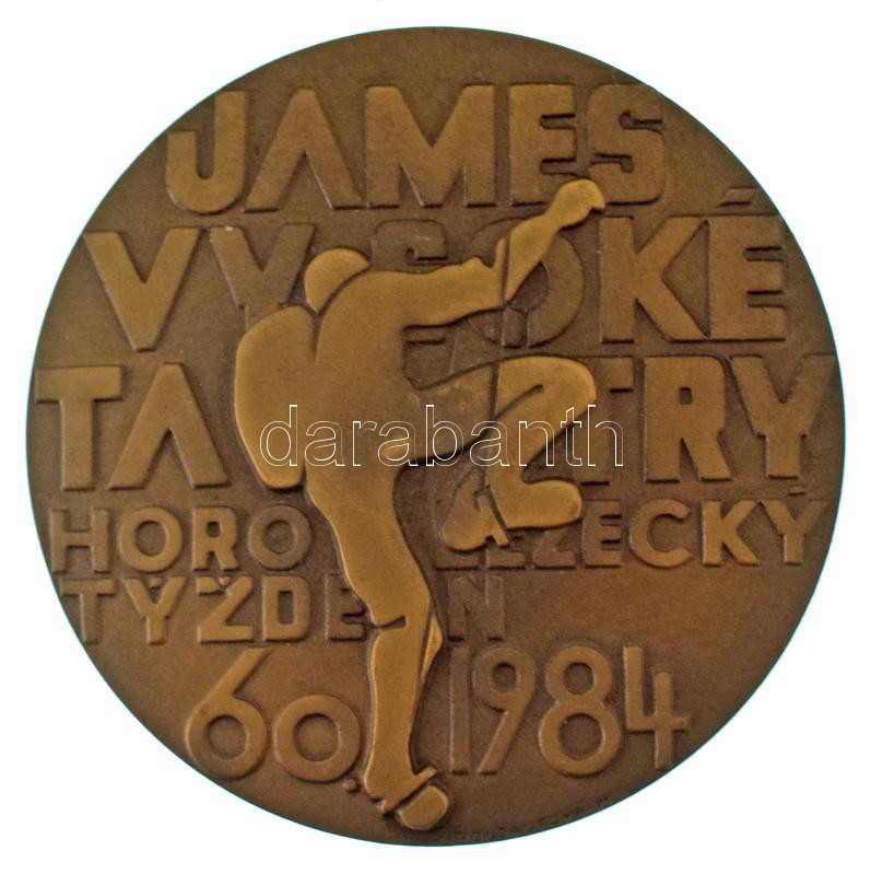 Csehszlovákia 1984. "JAMES Vysoké Tatry horolezecký týždeň 60 - 1984 (A JAMES Szlovák Hegymászó Egyesület Magas-Tátra hegymászóhetének a 60. évfordulója)" egyoldalas bronz hegymászó emlékérem eredeti tokban, névre szóló igazolással (71mm) T:AU