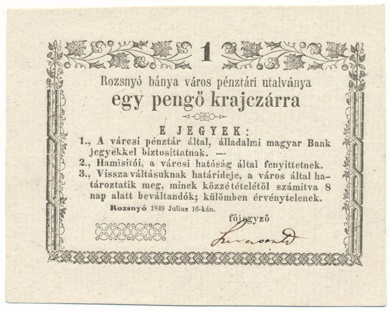 1849 Rozsnyó 1849. július 16. 1kr "Rozsnyó bánya város pénztári u... https://www.darabanth.com/de/512-Fernauktion/512.0/Numismatik/Ungarische-Banknoten~235/1849-Rozsnyo-1849-julius-16-1kr-3Cem3ERozsnyo-banya-varos-penztari-utalvanya3Cem3E-TAU3Cbr-~II3455933