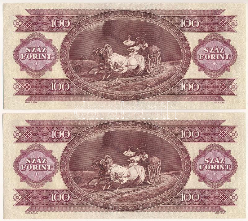 1993. 100Ft (2x) egyugrásos sorszámkövetők "B 207 060210" és... https://www.darabanth.com/de/512-Fernauktion/512.0/Numismatik/Ungarische-Banknoten~235/1993-100Ft-2x-egyugrasos-sorszamkovetok-B-207-060210-es-B-207-060212-TAU3Cbr-3E-Adamo-F~II3464767