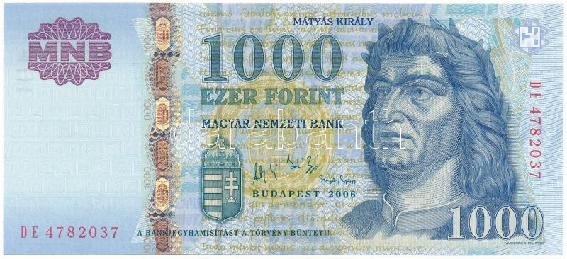 2004. 1000Ft "DE 4782037" T:XF https://www.darabanth.com/de/512-Fernauktion/512.0/Numismatik/Ungarische-Banknoten~235/2004-1000Ft-DE-4782037-TXF~II3459206