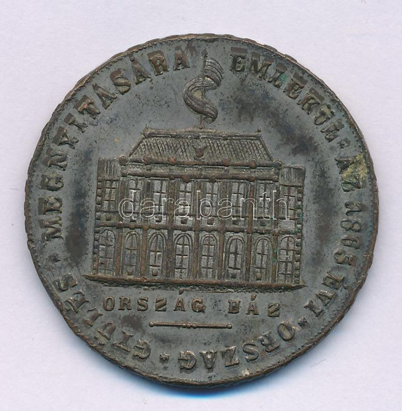 1865. "Az 1865. évi Országgyűlés megnyitása" ezüstözött bronz emlékérem "ÉLJEN A HAZA - ES LEBE DAS VATERLAND / EMLÉKÜL AZ 1865. ÉVI ORSZÁG GYÜLÉS MEGNYITÁSÁRA PESTEN - ORSZÁG HÁZ" (38mm) T:XF,VF ph., patina, kopott ezüstözés