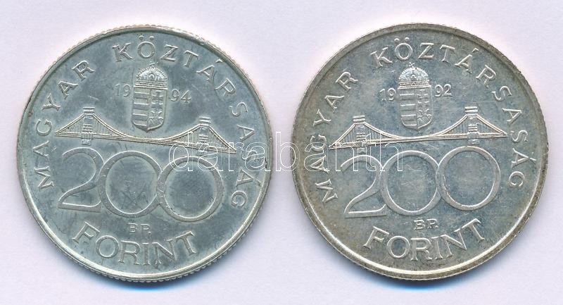 1992. 200Ft Ag "MNB" + 1994. 200Ft Ag "Deák" T:AU,... https://www.darabanth.com/de/512-Fernauktion/512.0/Numismatik/Ungarische-Munzen-und-Munzen-mit-ungarischem-Munzzeichen~236/1992-200Ft-Ag-3Cem3EMNB3Cem3E-plus-1994-200Ft-Ag-3Cem3EDeak3Cem3E-TAU-XF-patina3Cbr-3E-Adamo-F13-F13~II3457635
