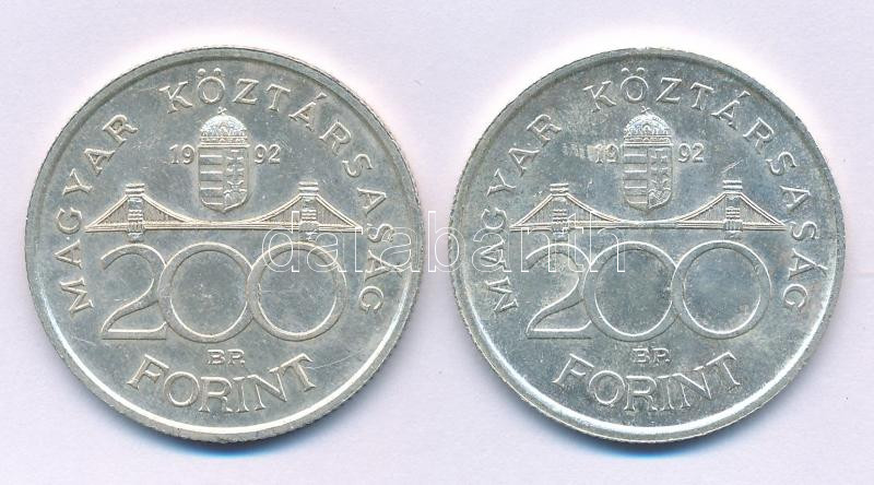 Beschreibung: 1992. 200Ft Ag "MNB" (2x) T:AU,XF patina
