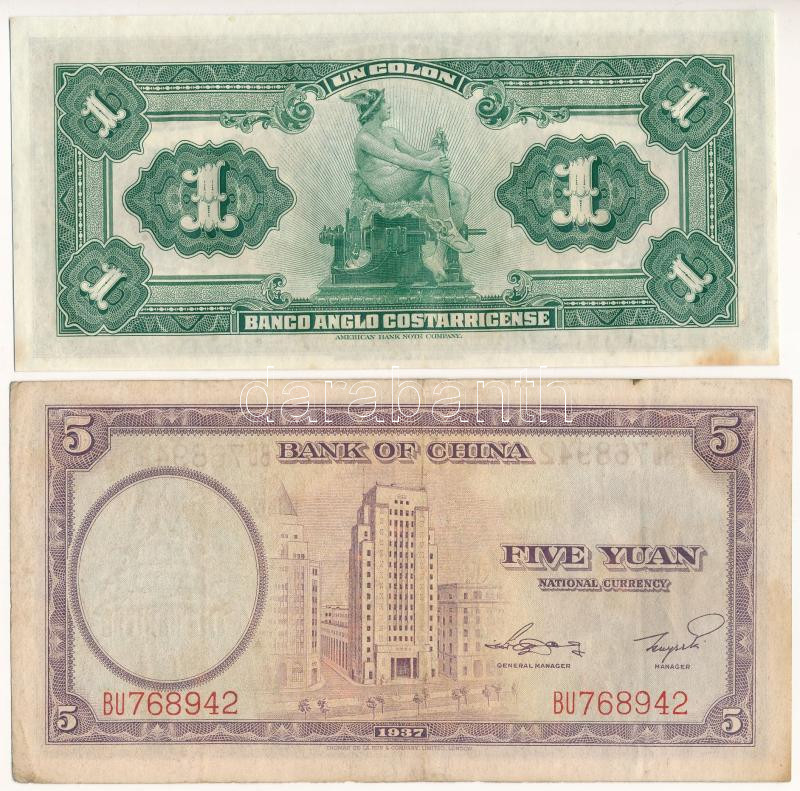 Beschreibung: Costa Rica 1917. 1C + Kína 1937. 5Y "Bank of China" T:VF-F
