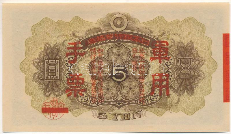 China 1938. Japanese occupation 5... https://www.darabanth.com/de/512-Fernauktion/512.0/Numismatik/Weltweit-Banknoten~242/Kina-1938-Japan-megszallas-5Y-TAU3Cbr-3E-China-1938-Japanese-occupation-5-Yen-CAU3Cbr-3E-Kra~II3465187